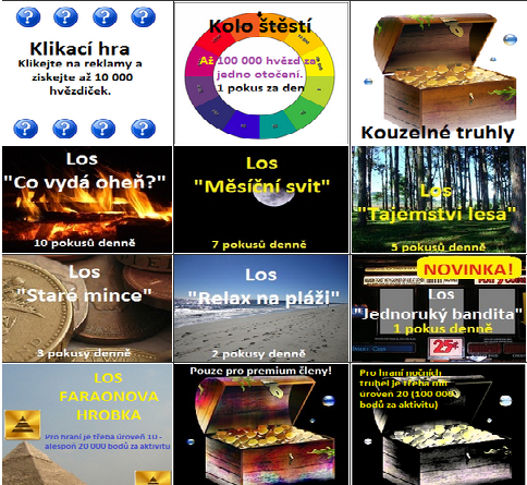 - možno vydělat na kole štěstí a 5 druhů losů